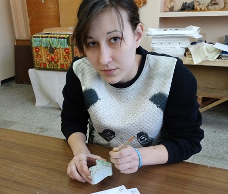 Игрушки выполняются из дерева. Чертежи делают французские студенты, а уже студенты нашего колледжа расписывают их, и, как говорят французы: «вдыхают в них душу» русской культуры.